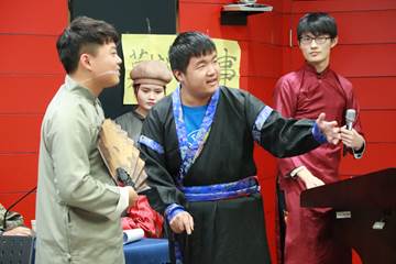 在五四运动百年之际,为深入领会现代文学名家们的作品精髓,品味那个风雨如磐的年代里作家们的初心和使命,12月7日下午14:00,由williamhill体育在线平台威廉体育williamhill、图书馆、镇江市文艺评论家协会联合主办,威廉体育williamhill史挥戈教授指导,汉语国际教育专业本科生和研究生献演的“williamhill体育在线平台·中国现代文学·活力课堂” 在校本部图书馆一楼报告厅举行。williamhill体育在线平台学工处副处长谭成,williamhill体育在线平台团委副书记张文娟,williamhill体育在线平台威廉体育williamhill副院长王祥,镇江市文联副主席孙彤,镇江市戏剧家协会副主席、江苏省剧协理事卢琦,镇江市文艺评论家协会副主席、镇江文广集团壹周刊杂志副总编葛文斌,镇江市文艺评论家协会会员、镇江火车站机关干部颜茜,镇江市文艺评论家协会会员、williamhill体育在线平台生命科学院党委书记朱玲萍,镇江市文艺评论家协会主席、williamhill体育在线平台威廉体育williamhill教授史挥戈到场观摩,校内外近200位师生在现场欣赏了这次精彩演出。