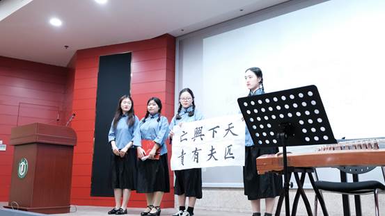 第一个节目是鲁迅话剧表演。《狂人日记》、《伤逝》和《风波》都是同学们熟悉的经典。同学们贴合时代进行改编,以惟妙惟肖的表演将百年前人们的彷徨与呐喊、犹疑与奋进带到了百年后的今天。《见字如面》节目中的书信朗诵配合着古琴、书法的艺术表演,动人心魄,感人至深。