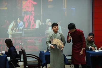 接下来的话剧《茶馆》更是异彩纷呈。左右逢源的王利发、贪婪凶恶的庞太监、苦命麻木的乡妇,表演者与人物合而为一,人物形象栩栩如生,一同述说着那个时代的黑暗炎凉。