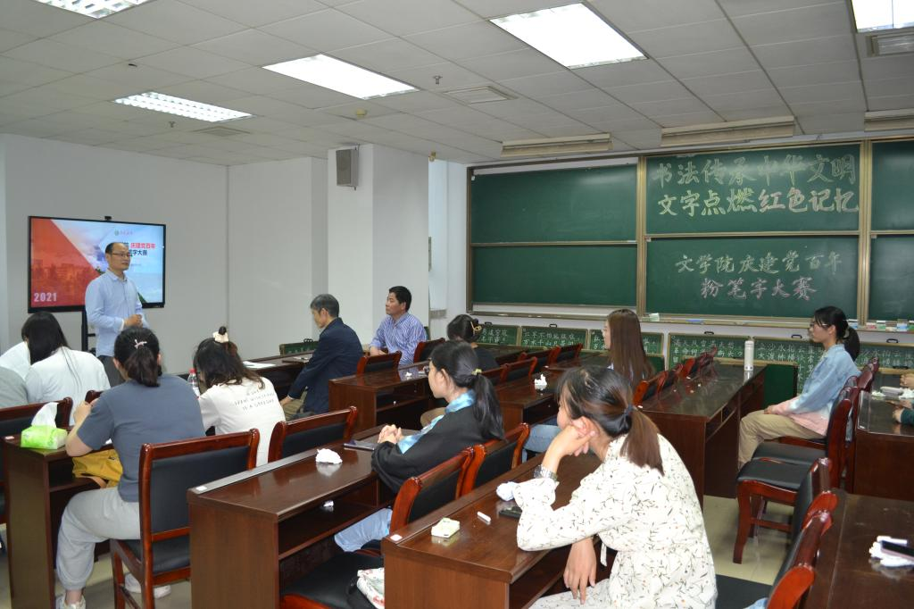 为庆祝建党100周年,弘扬中华民族的书法艺术,增强我院学生对粉笔字的审美意识和规范意识,提高师范生技能,5月21日下午,我院于三江楼901B举办粉笔字大赛。本次比赛邀请了威廉体育williamhill党委书记曲云进、教师教育学院教授郑可春、威廉体育williamhill副院长周渡担任评委,威廉体育williamhill党委副书记王彦、威廉体育williamhill团委副书记赵子琪、辅导员袁城、申彤彤及参赛同学参加了本次大赛。