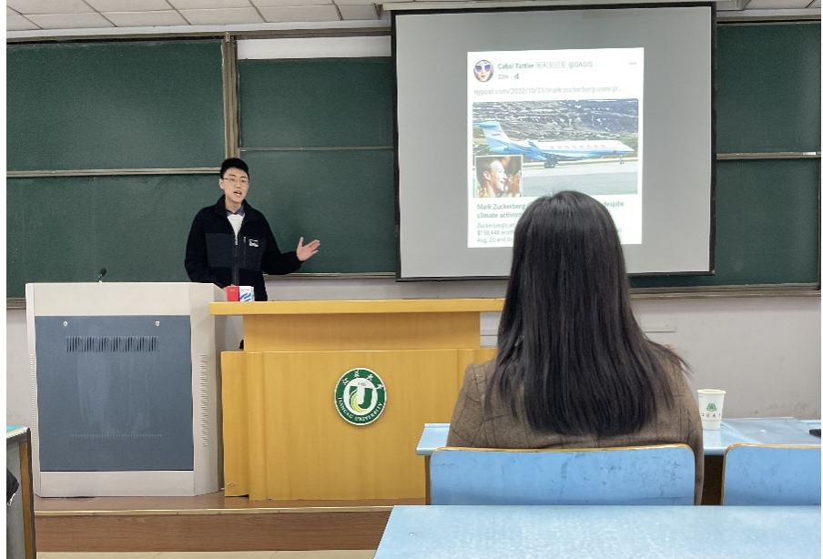 首先,在周渡老师的主持下,参加演讲汇报的11位同学从“时代现象”、“青春与责任”、“文化理解”三大方向展开,从各自的专业视角,分别围绕“文化输出,从浅开始,从通俗开始”、“和而不同”、“网课爆破”、“未知全貌,仍需置评”、“和精神内耗说不”、“996工作制”等主题,结合当下实事,契合时代特征,以或生动活泼或沉稳温和的风格,为我们呈现了一场精彩又同样发人深思的中英文演讲比赛。