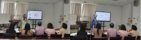 根据比赛要求,参赛选手在大赛指定课文中,选取1个知识点进行10分钟的教学片段展示。参赛选手准备充分,围绕相关教学语言点、文化点作了精彩的教学展示。创意新颖的课堂导入、层层推进的教学逻辑、精心设计的服饰道具、生动有趣的互动游戏,很好体现了国际中文教学的特点,并营造了热烈活泼的现场教学气氛,引得全场师生积极参与和互动。