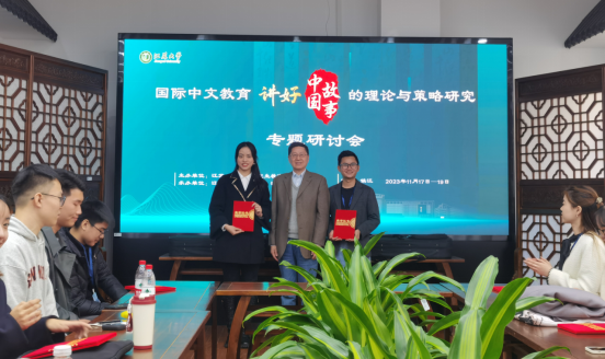 随后,各组同学根据自己的论文内容进行小组汇报,内容涵盖国际中文教学、中华文化海外传播、国家形象建构等多个方面。汇报结束后,程爱民教授、郑梦娟与徐开妍老师也对本组同学进行了专业点评,并对论文的进一步修改提出了相应建议。最后,在京江楼1104举行了本次论坛颁奖典礼。中国人民大学(苏州校区)的越南籍留学研究生杨德心、williamhill体育在线平台国际中文教育专业研究生白金晨荣获一等奖。