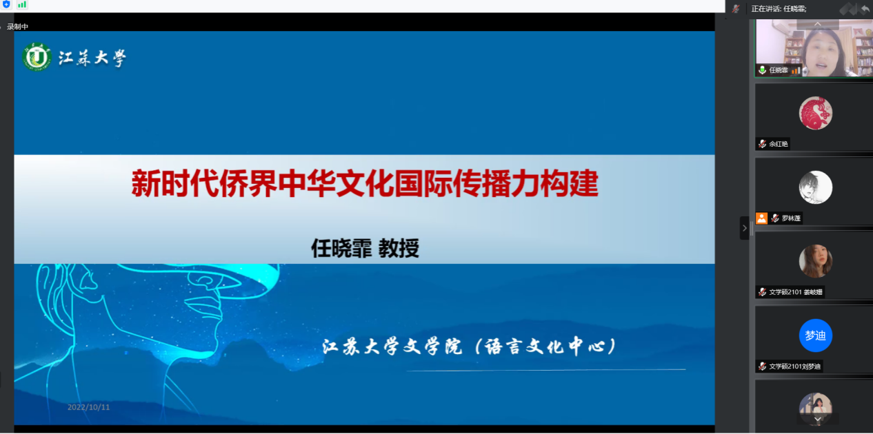 10月11日,威廉体育williamhill院长、中国语言文学和汉语国际教育学科带头人任晓霏教授以“新时代侨界中华文化国际传播力构建”为题,向威廉体育williamhill研究生作了一场精彩的“新学期研究生学术研究工作坊”。威廉体育williamhill全体研究生以及部分导师参加了本次工作坊。