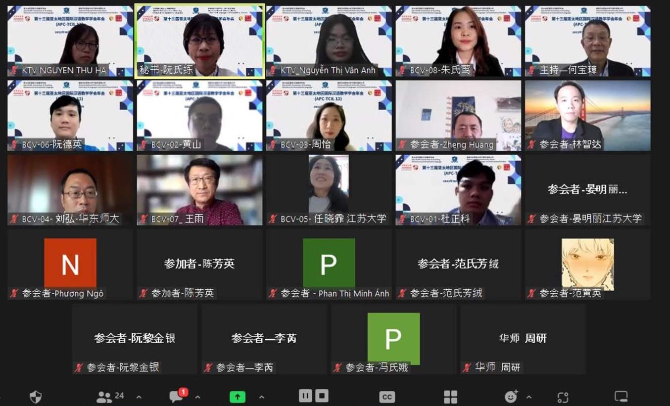2022年10月15日,第十三届亚太地区国际汉学教学学会年会——国际汉语教学的新理念、新思路与新方法以线下线上方式在越南河内国家大学蔡冠深文化中心成功召开。在本次学术会议上来自中国、越南、法国、美国、日本、柬埔寨、缅甸、塔吉克斯坦、马来西亚、俄罗斯等国家131位学者发言,线下线上400多位学者参与交流。会议共组织了131个交流报告,包括3个大会特邀报告和两个分场128个邀请报告。