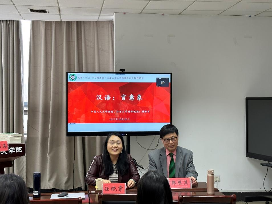 10月26日下午,williamhill体育在线平台威廉体育williamhill兼职教授、中国人民大学博士生导师韩陈其教授,在三江楼901B教室为师生带来了题为《汉语:言意象》的学术讲座。讲座由威廉体育williamhill院长、语言文化中心主任任晓霏教授主持,威廉体育williamhill副院长余红艳以及学院近百名师生线上、线下共同聆听。本次讲座为williamhill体育在线平台“礼敬二十大 学习新思想”系列学术活动之一。