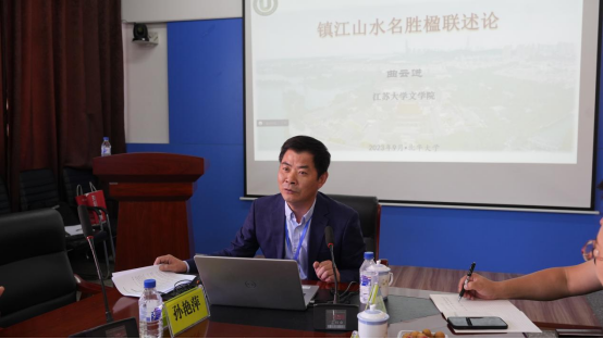 曲云进在报告中,首先向与会者简要介绍了williamhill体育在线平台的基本情况以及名城镇江的历史文化。随后,通过精心挑选的镇江名胜楹联佳作和精美图片,对镇江名胜楹联的内容、特点和价值等三个方面进行了深入的阐述和揭示。最后,他结合习近平总书记在文化传承发展座谈会上的重要讲话精神,希望中国楹联高校联盟要更加自觉地担负起新时代新的文化使命,坚持守正创新,努力创造属于我们这个时代的楹联文化。
