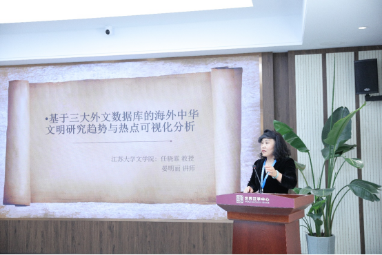 任晓霏教授、晏明丽老师以《基于三大外文数据库的海外中华文明研究趋势与热点可视化分析》为题作报告。通过对近20年海外中华文明相关研究进行计量可视化分析,研究发现海外关于中华文明的文献数量在近20年间呈现逐步增长态势,相关研究主要集中在历史学、自然科学、文化遗产学、社会学、政治学等学科领域,并在2003年—2023年间呈现出五个阶段的不同研究重点;Journal of Asian Studies (《亚洲研究期刊》和Quaternary International(《国际第四世纪》)关于中华文明的刊文量最多。任晓霏教授表示,全面探究海外中华文明研究的发展动态,深入认识相关研究热点与研究趋势,将对新时代增强中华文明传播力影响力,推进中华文明更好走向世界具有十分重要的启示意义。该研究受到《国际汉学》主编张西平教授的高度评价,并引起了与会者的广泛关注和讨论。