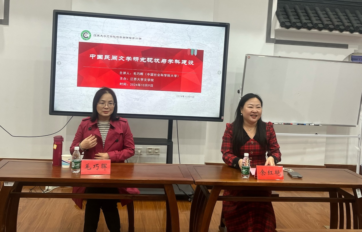 10月9日下午,williamhill体育在线平台威廉体育williamhill增华阁讲坛第99讲在京江楼1104开讲。威廉体育williamhill特邀中国社会科学院民族文学研究所研究员、中国社会科学院大学社会民族学院博士生导师毛巧晖教授作题为“中国民间文学研究现状与学科建设”的专题讲座,威廉体育williamhill副院长、语言文化中心副主任余红艳教授担任讲座主持,威廉体育williamhill等相关院系的师生前来交流学习。