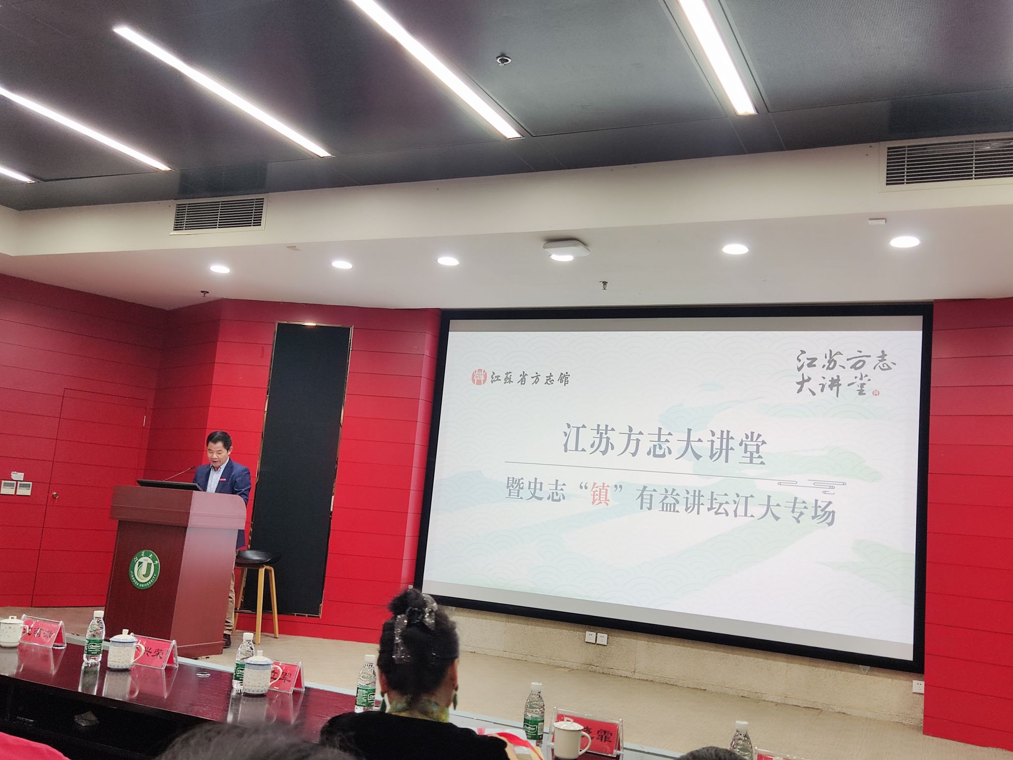 10月22日上午,由江苏省地方志办公室主办,镇江市史志办公室、williamhill体育在线平台威廉体育williamhill承办的“江苏方志大讲堂暨史志‘镇’有益讲坛”在校图书馆一楼报告厅举行。江苏省地方志工作办公室党组成员、副主任刘立军及相关处室负责同志,镇江市史志办公室党组书记、主任卜兴荣,党组成员、副主任蔡晓彬及相关负责人员,镇江市下辖各市区史志办公室负责同志,威廉体育williamhill党委书记曲云进,威廉体育williamhill院长、语言文化中心主任任晓霏及威廉体育williamhill、科技信息研究所师生代表等共百余人参加活动。活动由江苏省方志馆副馆长沈萌溦主持。
