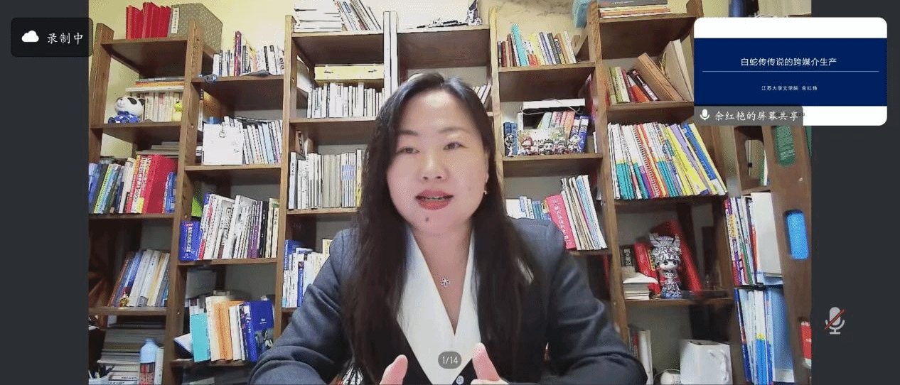 在讲座即将结束之前,余红艳教授向大家发出了来一场“传说之旅”的邀请。她以镇江代表性传说如白蛇传传说、董永与七仙女传说、刘备甘露寺招亲传说、梁红玉击鼓抗金传说等为例,提出“镇江:中国传说之城”的城市形象界定,邀请大家前来镇江,走进文化现场,切实感悟中国经典传说的跨媒介叙事与跨媒介生产,积极探索中华优秀传统文化的创造性转化与创新性发展思路。