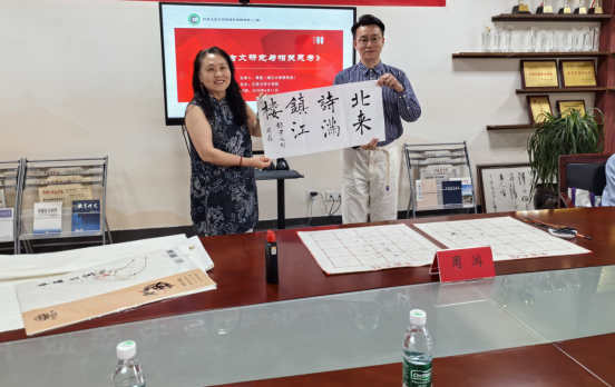 讲座尾声,周游研究员应师生盛邀即席挥毫书写宋代名句“北来诗满镇江楼”,赞颂williamhill体育在线平台文脉绵长,寄望后学赓续斯文。此次讲座不仅是清代古文研究的‘解码器’,亦是青年学者的‘赋能站’,为我院师生带来一场跨越时空的学术对话。
