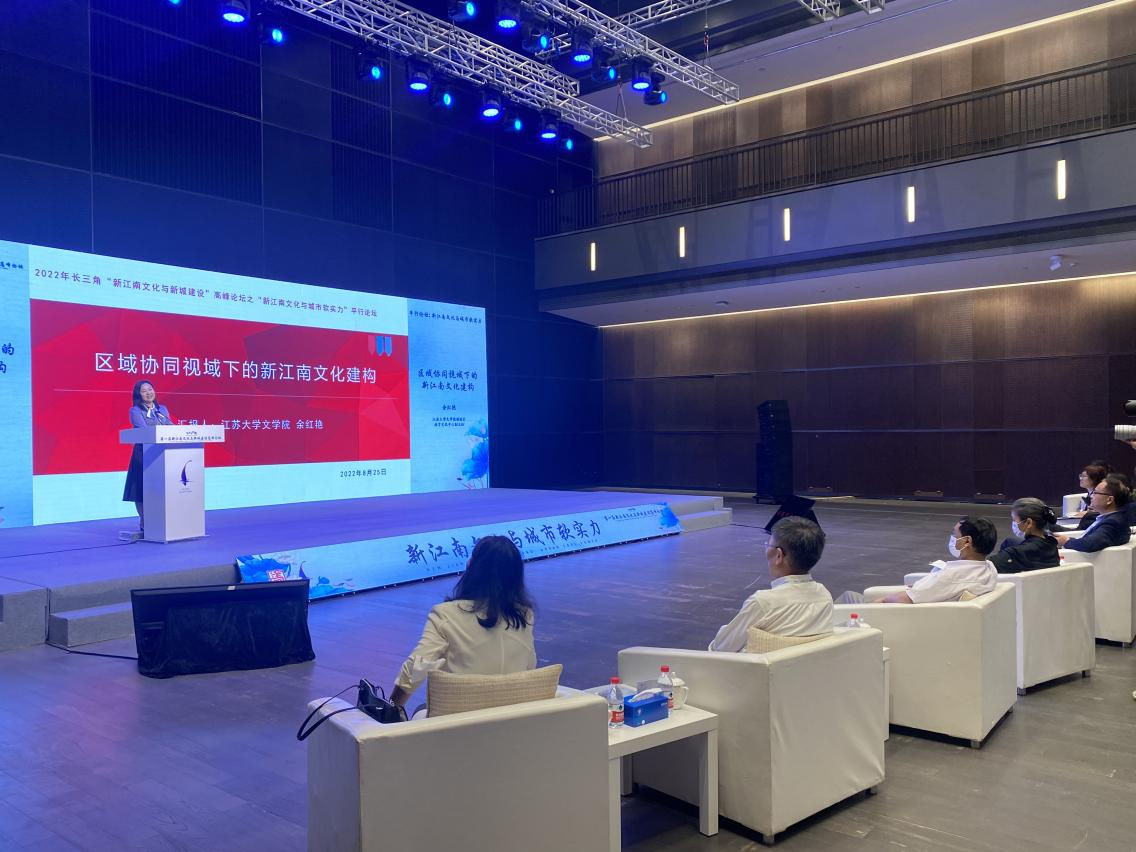 在主旨演讲中,余红艳分别从新战略、新理念、新时代三个视角细致梳理了“新江南文化”概念的提出背景与时代价值,深入剖析了长三角一体化国家战略语境下,新江南文化的区域拓展和意义提升;指出在新江南文化建构过程中必须关注的两组关系,即传承与创新、整体与个体的关系,强调新江南文化需传承包括诗性审美、改革创新、开放包容精神等在内的江南文化核心精神,应将新江南文化写在长三角的“大街小巷”,既能看到独具地域市镇个性的“新江南”,同时也能看到具有整体贯通的“长三角”;最后,余红艳通过对典型案例的梳理与阐释,从文化资源、行业条线和学术研究三个方面的协同整合视角进行分析,为进一步建构新江南文化、整合长三角多类型资源与各方力量提供了颇具启发的建议。