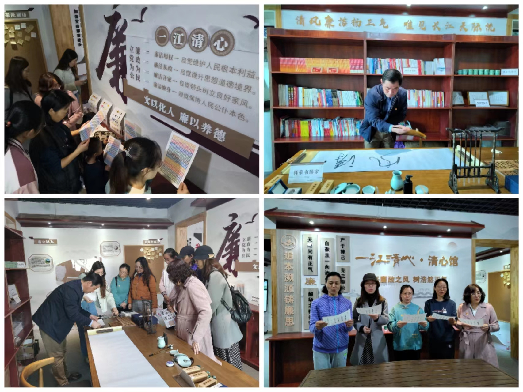 在“一江清心”廉洁文化建设示范点,参观了廉政书屋和廉政书桌,进行了“猜廉语”“找腐字”“书廉字”“拓廉诗”等互动活动,还组织了团组廉诗朗诵,多方位、多维度地感悟了廉洁文化的感染力。