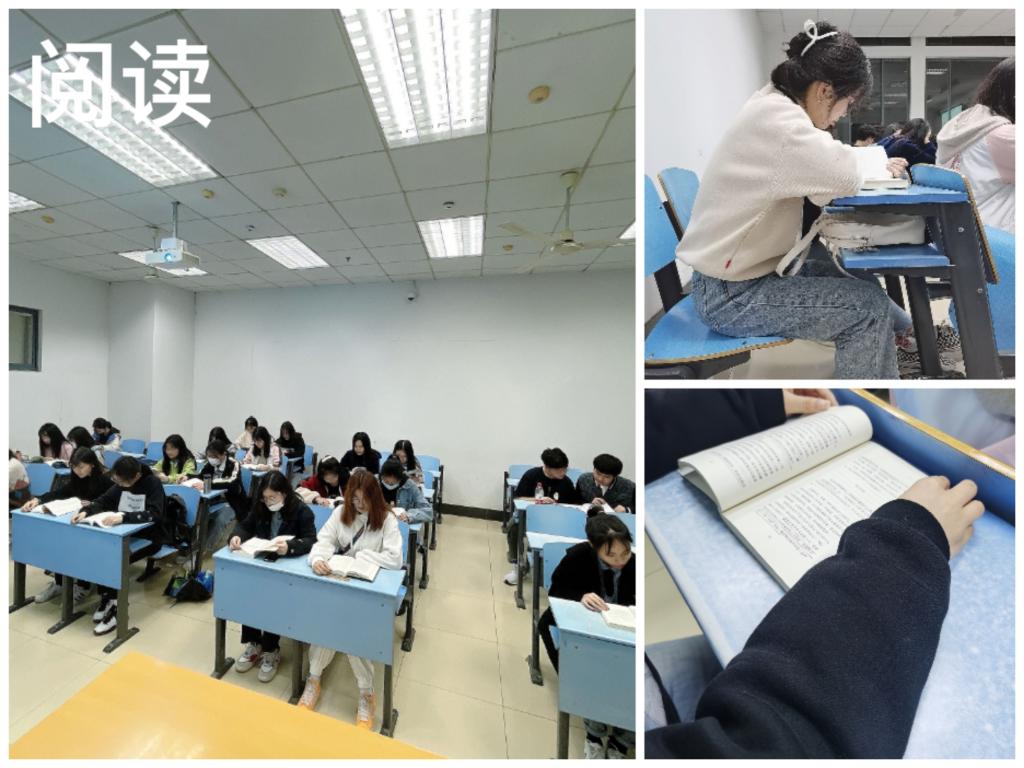 本次活动旨在帮助同学放松自己,愉悦身心,增进同学们的友谊,为下一个阶段的学习营造良好氛围。活动开始前,由心理委员在班级群中发布消息,确定活动内容。活动开始后,首先由心理委员王丹丹带领大家在校园中踏青赏春并沿途进行交流,然后回到了三江楼305教室朗诵诗歌《风雷动》,高唱歌曲《追梦赤子心》。同学们还在一起阅读书籍,分享喜欢的段落。最后心理委员王丹丹总结活动,给同学们鼓励与倡议,希望同学们阳光生活。