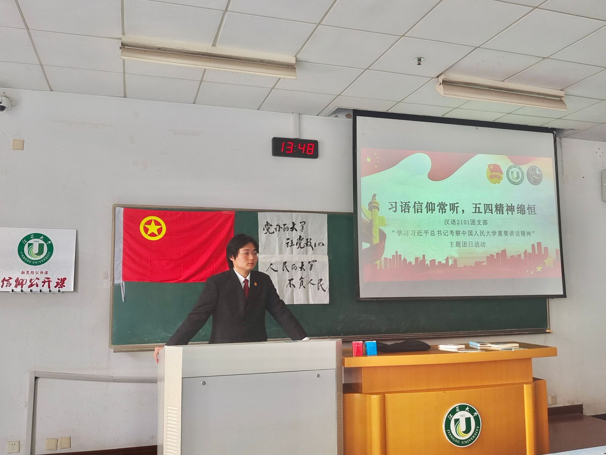 为深入学习贯彻习近平总书记考察中国人民大学的重要讲话精神,5月22日下午,威廉体育williamhill汉语2101团支部在三江楼309举行“习语信仰常听,五四精神绵亘”主题团日活动。威廉体育williamhill团委副书记赵子琪走访了本次活动。