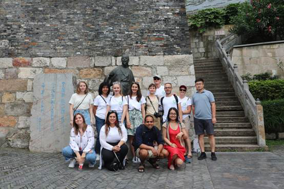 第一天早晨,在享受过丰盛的早餐后,学生们满怀期待地来到了教室,开始来中国后的第一节汉语学习,语言文化中心的唐老师教学经验丰富,教学由浅入深,首先通过拼音教学检测出学生的汉语水平,进而因材施教,照顾到每一位学生;她以日常生活用语为例,教授了学生多种句式,学生们听得聚精会神;老师的教学互动性极强,学生参与度较高。简短的第一节课程结束后,每个人竟然都能用汉语进行自我介绍,包括用较长的句子介绍自己的兴趣和爱好;最后进入同学们最喜欢的环节,老师现场教授经典歌曲《甜蜜蜜》,她中英对照,让学生了解歌词的含义,随后分组对唱,提高同学的积极性,同学们的进步十分明显,在老师的教导下,第一次接触汉语的同学都能流利大声地歌唱,每个人脸上都洋溢着自信快乐的笑容。 午后,同学们有的在志愿者的引导下深入体验williamhill体育在线平台校园文化,有的小憩片刻,随即开始了下午的西津古渡与长江栈道的游览。学生们漫步在江南古渡,对中国文化产生了浓厚的兴趣,通过带队老师对渡口历史的讲解,他们明白了镇江三千年历史文化的积淀,通过参观古巷,他们感受到了中国传统文化的魅力,在体会到“两三星火是瓜州”的意境后,他们在张祜铜像前合影留念。随后,带队老师带领他们体验中国独特的戏剧文化,引起了学生的强烈反响,为接下来的戏曲教学打下良好基础。随后,大家来到了北固山旁的长江栈道,同学们纷纷被眼前这“潮平两岸阔,风正一帆悬”的滚滚长江所吸引,纷纷拍照留念。