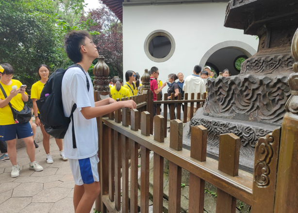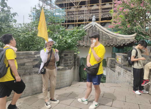 The first place to arrive was the Dongwu Ancient Road. Along the Dongwu Ancient Road, the campers saw the Iron Pagoda. The structure of the iron tower is octagonal, with a tower base (i.e. lotus seat) under the tower, four doors on each floor, and exquisite statues of Buddha and Flying Sky cast on each floor, with vivid postures. In the guide's narration, the campers felt the historical story of the Beigushan Pagoda, and traced back from the architectural style and construction history to the long history of traditional Chinese architecture.