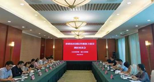 On September 16 th, a symposium on the organization of international communication capacity building organized by the Zhenjiang Returned Overseas Chinese Federation was held in Jingjiang Hall on the first floor of Building 8, Biyuyuan, Zhenjiang. Jiang Yonghua, Vice Dean of the School of Liberal Arts and Deputy Director of the Language and Culture Center, attended the meeting and made a speech, actively offering advice and suggestions for strengthening the organization of international communication capabilities.
