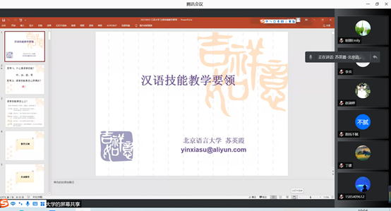 The training was hosted by Jiang Yonghua, Vice Dean of the School of Liberal Arts and Deputy Director of the Language and Culture Center. Jiang thanked Professor Su Yingxia for carrying out the training for Chinese teachers in our school many times, indicating the development plan of the Language and Culture Center to improve the teaching level of Chinese teachers. Ms. Tang Min, director of international Chinese Teaching department, made a summary of the training and put forward more detailed requirements for all full-time and part-time Chinese teachers in this semester.