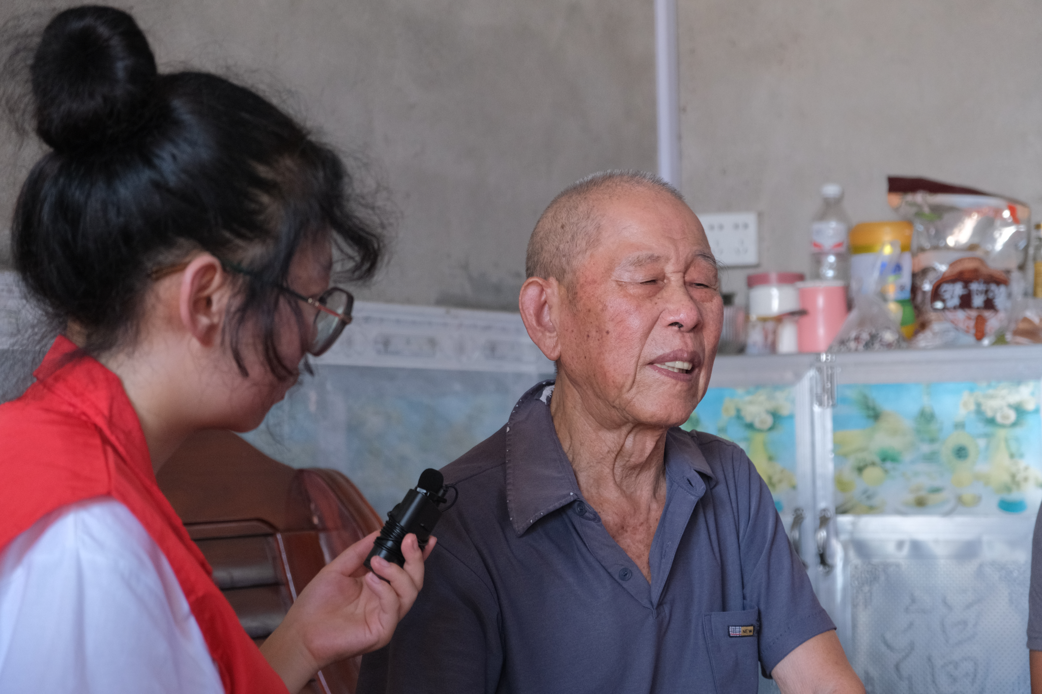 采访老党员,忆红色历史。老党员梁月新今年84岁,眼睛已经看不清楚,平时只能靠耳朵“看”世界。团队成员在与梁月新的访谈过程中,听老党员生动地讲述了1984年巴山屯自主组建抗日队伍英勇抗敌的故事,自卫队员梁高添、梁智新、梁统辉、梁佑超等4人英勇牺牲,形象的讲述重现了当年自卫队和敌人的激烈战斗过程。梁月新不时地感慨当地近年来在党的政策引领与支持下,发生的翻天覆地的变化,现在这个时代的人们真的很幸福,并对新时代的青年寄语,“其他国家有的,我们没有的,你们都要努力研究出来”。