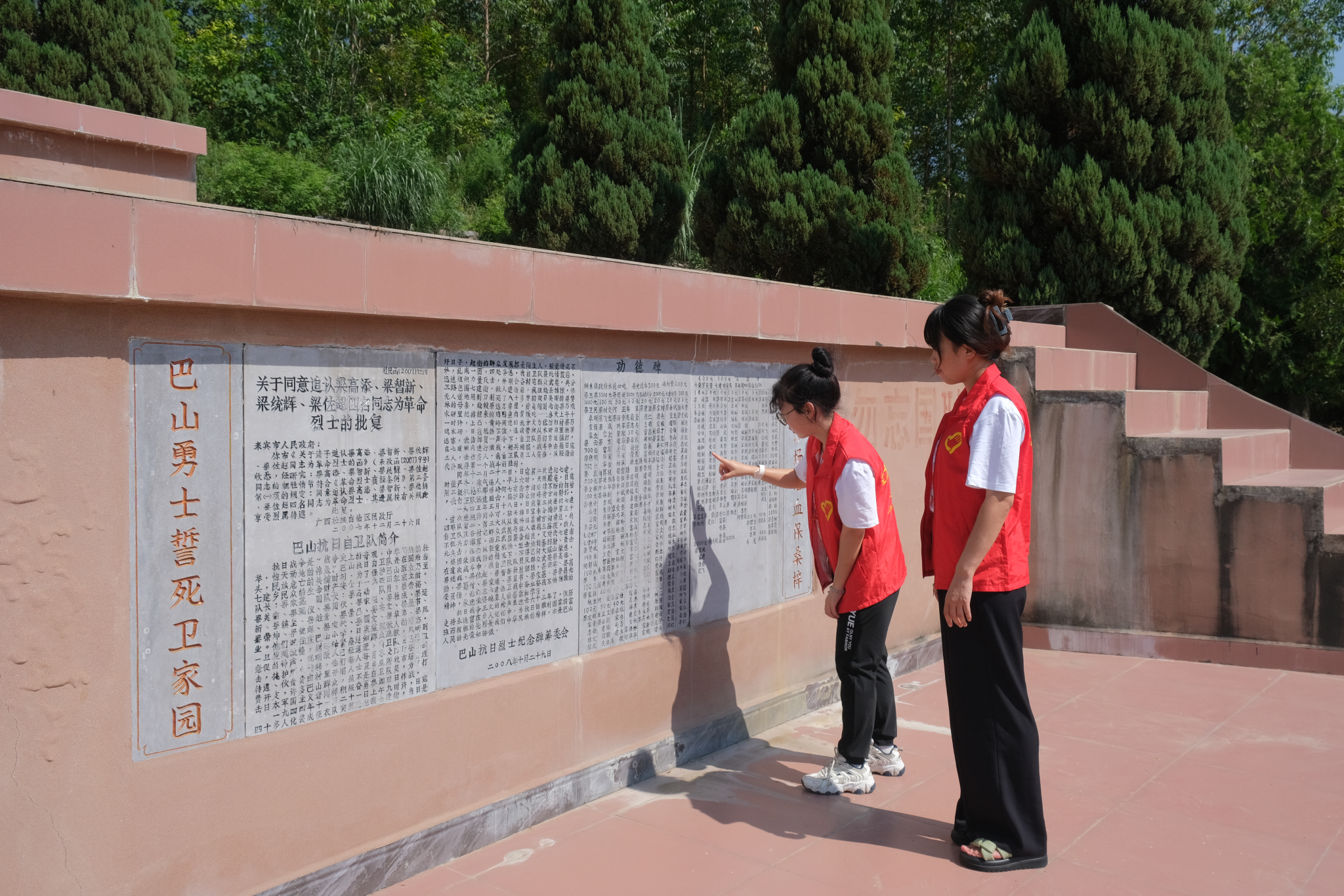 探寻红色印迹,传承烈士精神。团队成员不惧烈日炎炎,来到巴山抗日烈士纪念碑,详细了解了七建乡抗日自卫队三次抗击入侵七建的日本侵略军,保卫家乡的英雄事迹。走近烈士功德碑,石碑上镌刻着英雄们的名字,向和平年代的人民述说着一段风雨飘摇的历史。“抬头仰望,是对英雄的敬畏;低头沉思,是对先辈的悼念”,团队成员们看着阳光下闪闪发光的红星,民族自豪感和青年的责任感油然而生。 “新时代青年大学生应该承担责任,人人都应做有担当的青年。”队员孙佳欣说。团队成员怀着探寻红色印迹,从巴山烈士英勇抗战的故事中体悟红色精神,坚定理想信念。